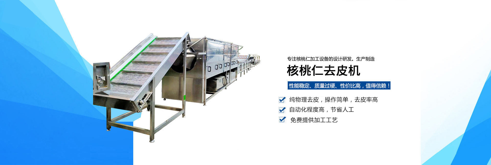 奥舜机械 【核桃仁去皮机】打破了核桃仁深加工过程中的困扰,纯物理脱皮方法,专门针对核桃仁表皮的冲洗,代替了传统的化学泡制去皮,使产品更安全放心,连续式工作,操作简单,去皮率高、破损率低,自动化程度高,节省人工,可配套烘干箱使用。